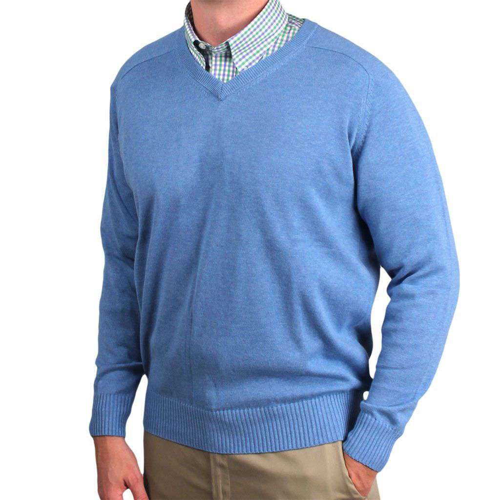 Country Club Prep The Banker Cotton V Neck Sweater In Light Blue